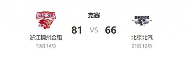 赵睿赛前伤退,北汽队客场输球。4月1日,在CBA常规赛第33轮比赛中,北京北汽队以66比81不敌浙江队,得分和三分球都创下球队赛季新低,排名跌出前三。